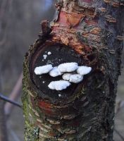 Это щелелистник обыкновенный - Schizophyllum commune.