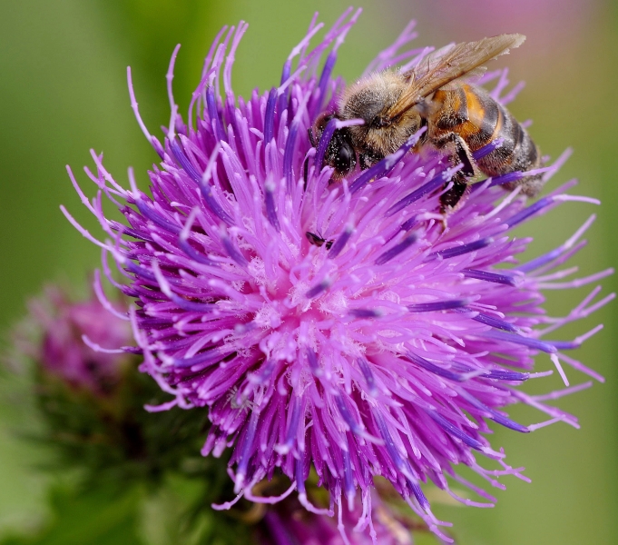 Шершень: Медоносная пчела на татарнике.