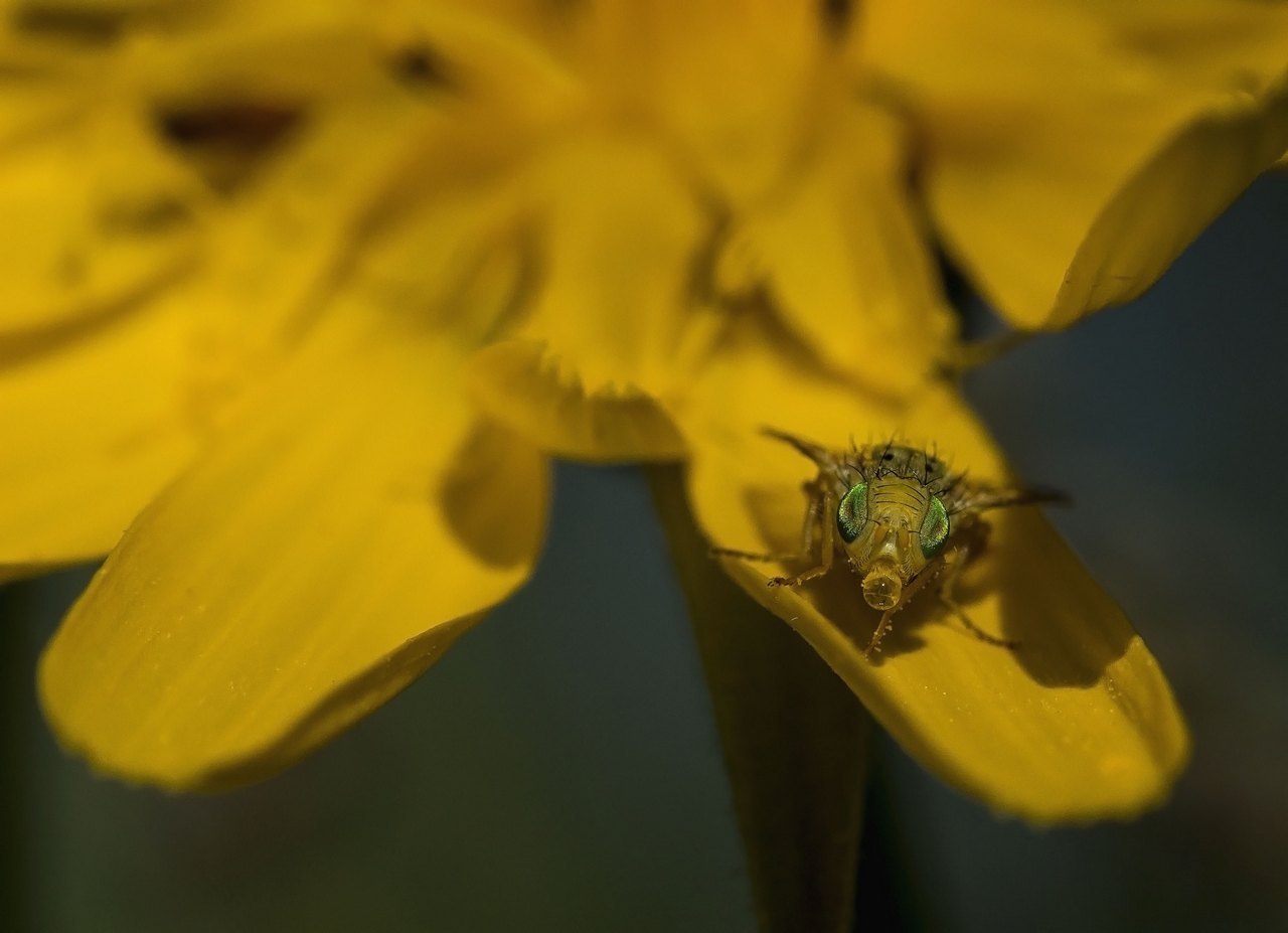 Результат представляю на Ваш суд.  Спасибо Вам за внимание и старания! Очень хорошо вышло. Я тоже думала про обрезку, такое существо должно занимать главное место в кадре. Цветок, конечно, на мой взгляд, получился перенасыщен. Я ещё попробую повозиться по Вашей методике. А как Вы повышаете резкость? Я делала с помощью медиан в ФШ.