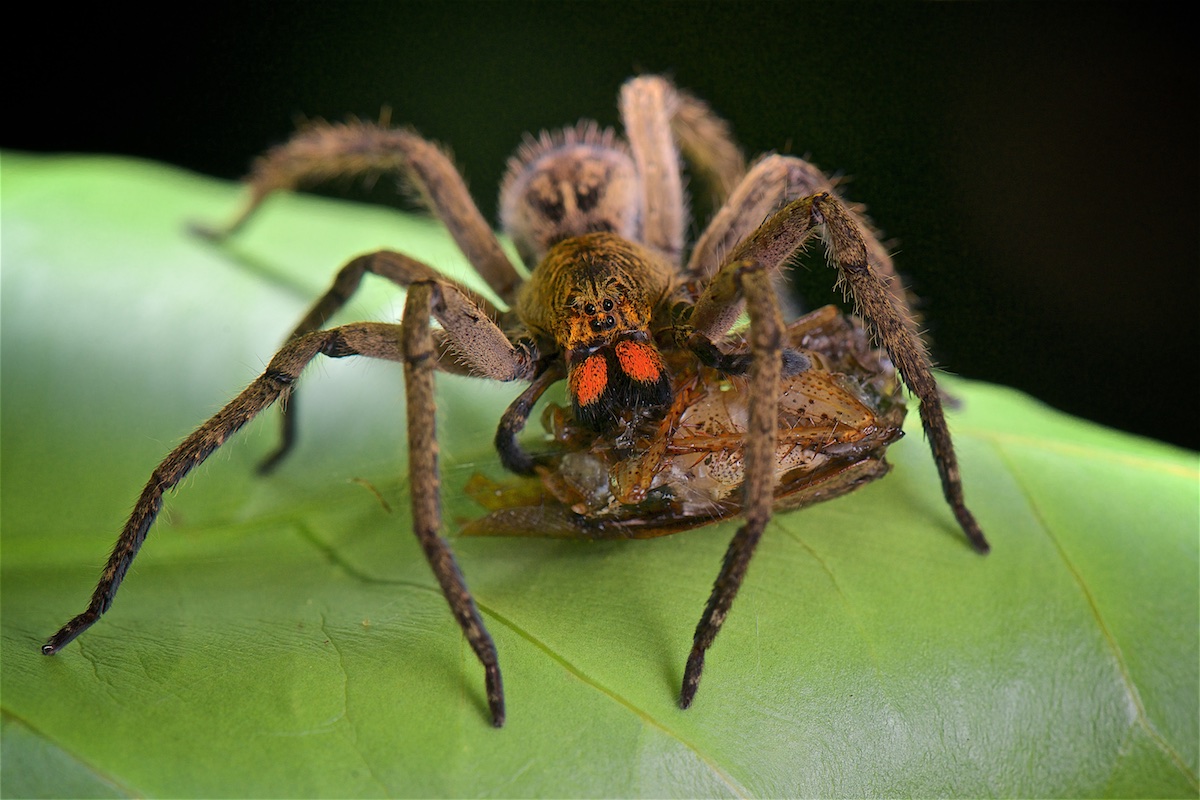 На этом снимке вообще нельзя сказать кто тут хищник, а кто жертва. И паук и муравей истинные хищники, но муравей слишком мал для такого большого паука (он такого просто не укусит), а паук слишком велик для одного муравья, но попади этот паук-доломедес в муравейник, вряд ли бы живым ушел