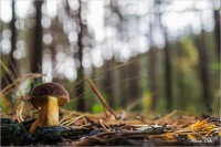 Ну ребята вы даёте! Снимок постановочный (чего я тоже не люблю) Грибы не растут на берегу, даже пересохшего, озера. Мысль моя работала в том направлении, чтобы обезличить фон, желательно высветлить, чтобы не отвлекал, да и показать "исподнее" гриба. Ну ничего я более не придумал,как перенести его к этой луже. А рос он в 10 метрах вот так -