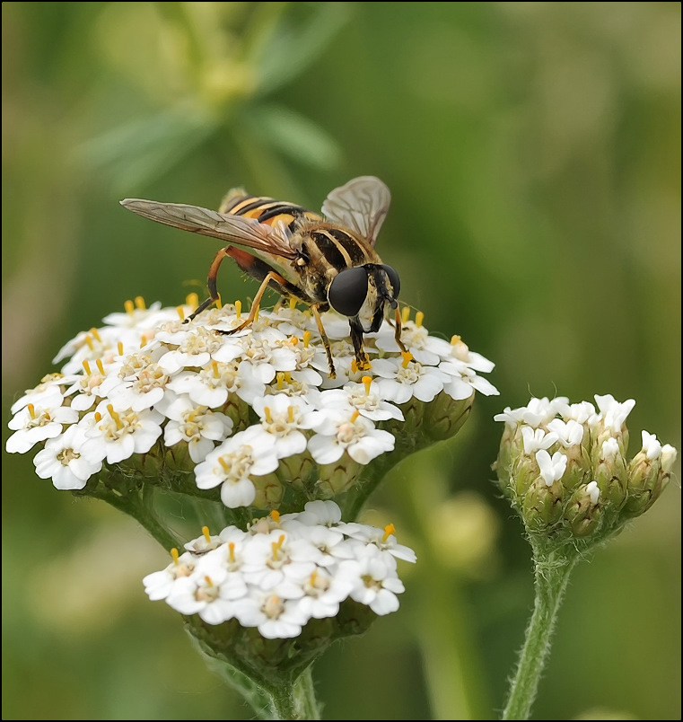 Сколько я их фотографировал, и полосато-желтые обычные, и полосато-белые, огромный черный с переливающимся оттенком, но такого вижу впервые, другой он какой-то.