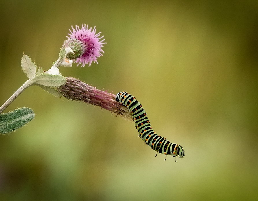 Просто опишу ощущения - взглят бегает с бражника на листик, с листика на бражника, туда - обратно, и не останавливается. Не смотря на неполность и размытость листик всё-таки является почти равнозначным бабочке объектом в кадре, деля его, кадр на две части.  Насчет равнозначности листика и бабочки не соглашусь. Насчет того что взгляд бегает туда сюда... В любом фото с линейной перспективой взгляд тоже перемещается, в моем фото линейной перспективы конечно нет, но почему не попробовать применить в макро то, что применяется в других жанрах?