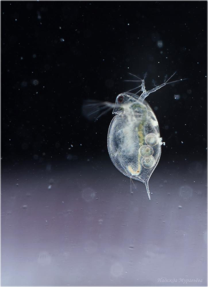 Даже не представляю себе, как со связкой 18-55+перевёртыш+встроенная вспышка (сама прошла через такой "суповой набор"), можно добиться такого обалденного качества! Надя, это не составной, это именно "перевёрнутый", но с сохранением электрики. Муки (да и техника работы тоже), как я понимаю, сопоставимы с MP-E. Только он темней гораздо. Jaguar paw: Ну ничего себе! Тут тебе и дафния, и циклоп, который по сравнению с дафнией гном, и еще что-то круглое и неопознаное  Пузырёчки к кювете прилипли