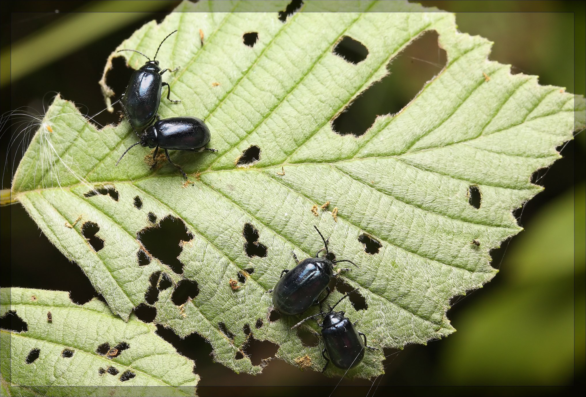 Почетче, к сожалению, никак, ибо, тварь слишком мелкая, а у меня довольно дешевая цифро-мыльница. Фотик на самом жуке не фокусируется, а фокусируется на листике.