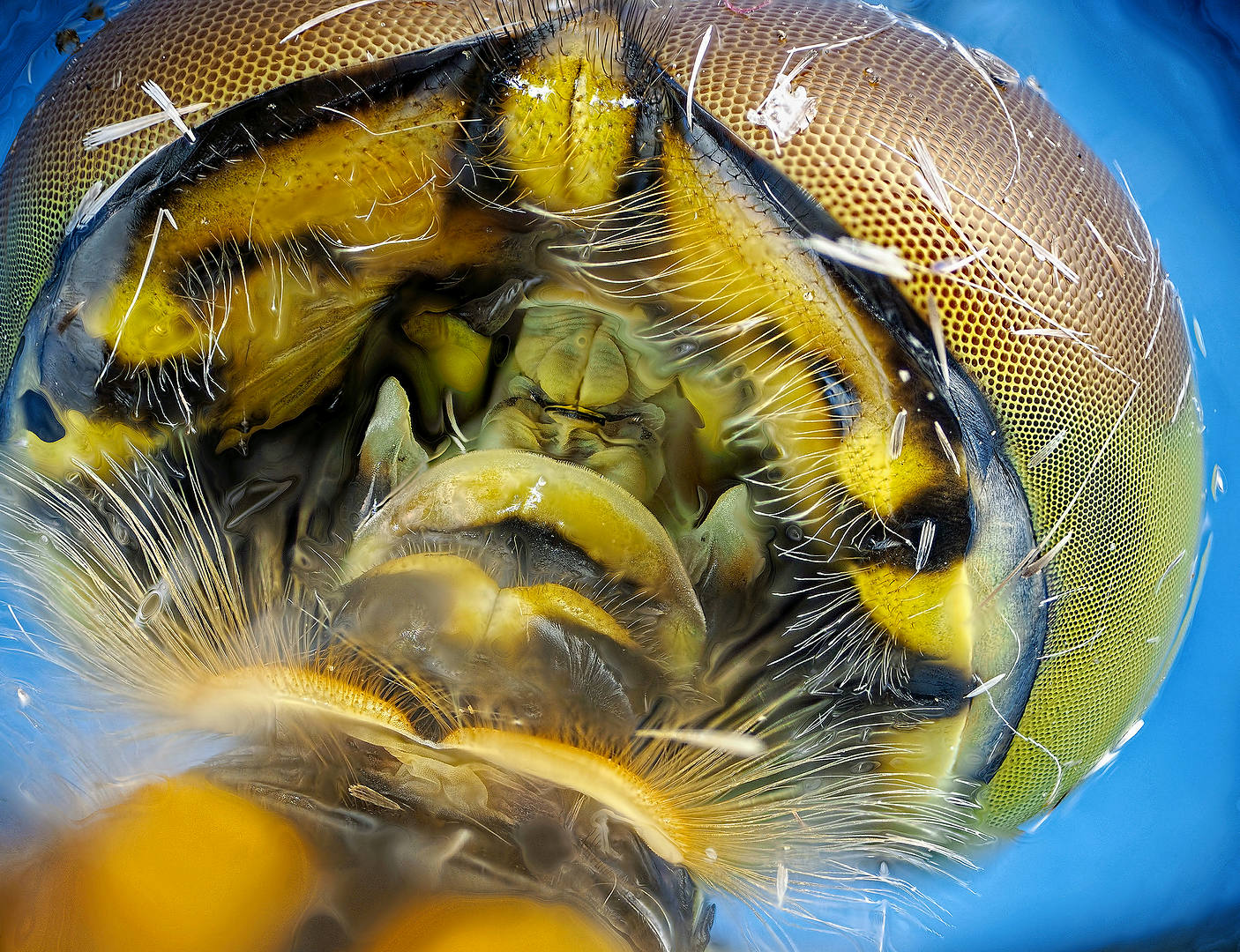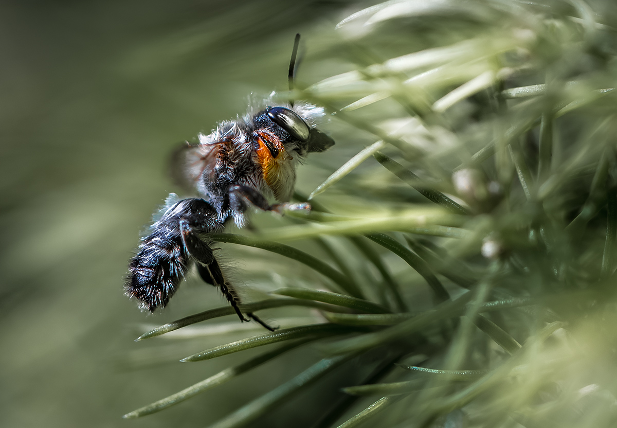 А вот попались клещи на шмеле.По форме похожи на то, что на гусенице.По цвету чуть другие, но на стрекозе вообще были бурые, поэтому варианты,видимо, возможны. Может быть, кто-то знает электронную публикацию про клещей на насекомых?