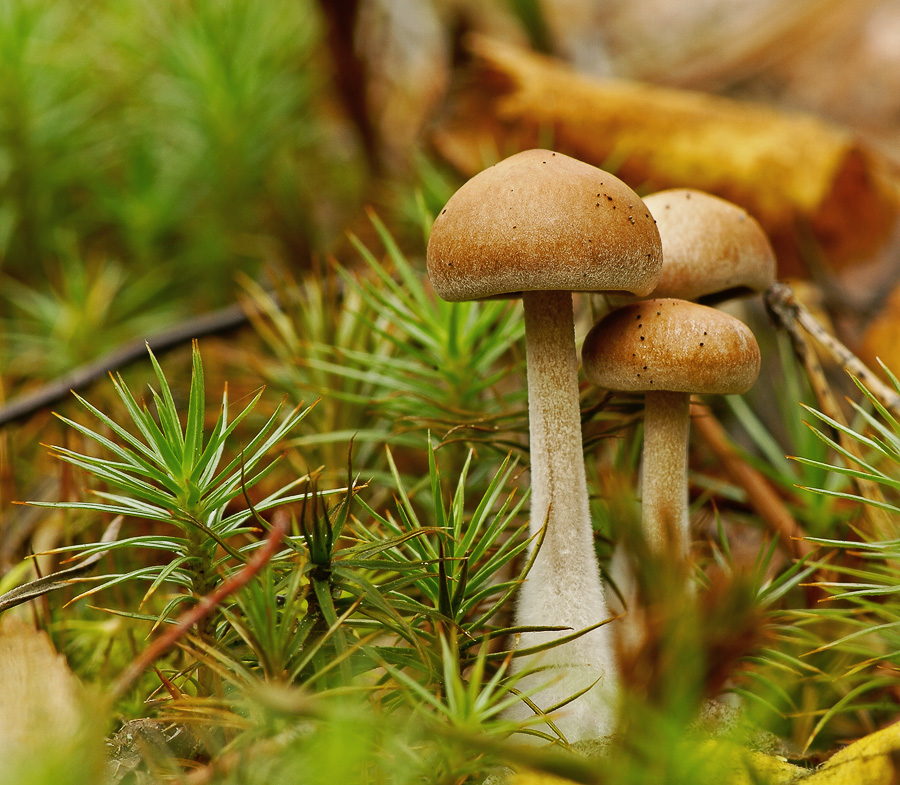 не поганки какие-то, размером сантиметра 2, а все основание ножек как будто в шубки одето...