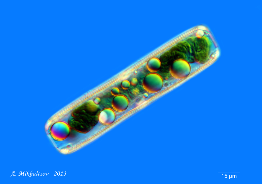 Анатолий Михальцов: У диатомовых водорослей капли масла - это запасные питательные вещества. У этих водорослей в процессе фотосинтеза не образуется крахмал.