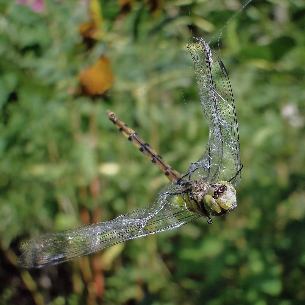 Большой страшный хищник микромира попал в сети меньшего по размерам, но более удачливого хищника