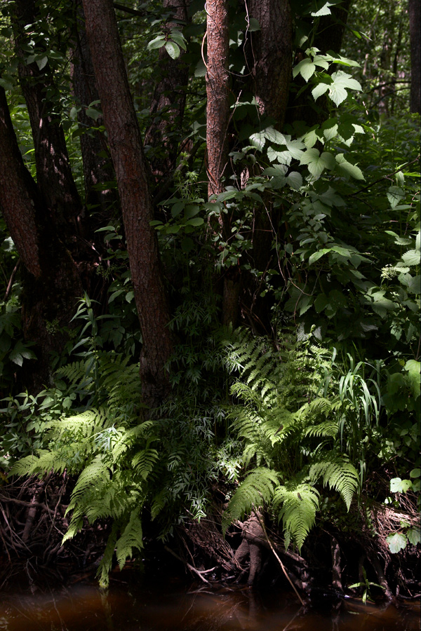 Лес там и вправду был замечательный. Картина менялась почти ежеминутно. Зачастую слева лес был одним, а справа уже совершенно другим. Помню в одном месте мы шли по дороге и слева проходили густой ельник северного леса, а справа в это время созерцали обычный широколиственный лес заросший подлеском. Но чистый сфагновый сосняк с островками серебристо-седого мха меня просто убил своим запахом, поразительной красотой и насыщенностью солнечными лучами, частоколом стволов.