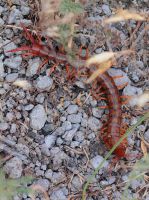 С такой расцветкой встретился впервые. Да и размер интересный. Если длина темной была около 10 см, то эта была значительно больше. О размере можно судить относительно цикады (Tibicen plebeja). Кадр сколопендры во всей красе прилагаю