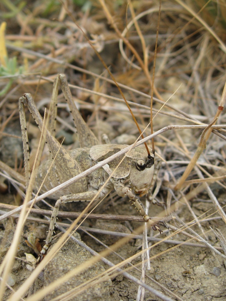 Это склон заросшей травой горы из голубой глины над Черным морем. Здесь данных желтоглазых прямокрылых встретил несколько сотен: и на глине, и на камнях, и на гальке у воды, и, конечно, в траве. Иные прямокрылые попадались гораздо реже.