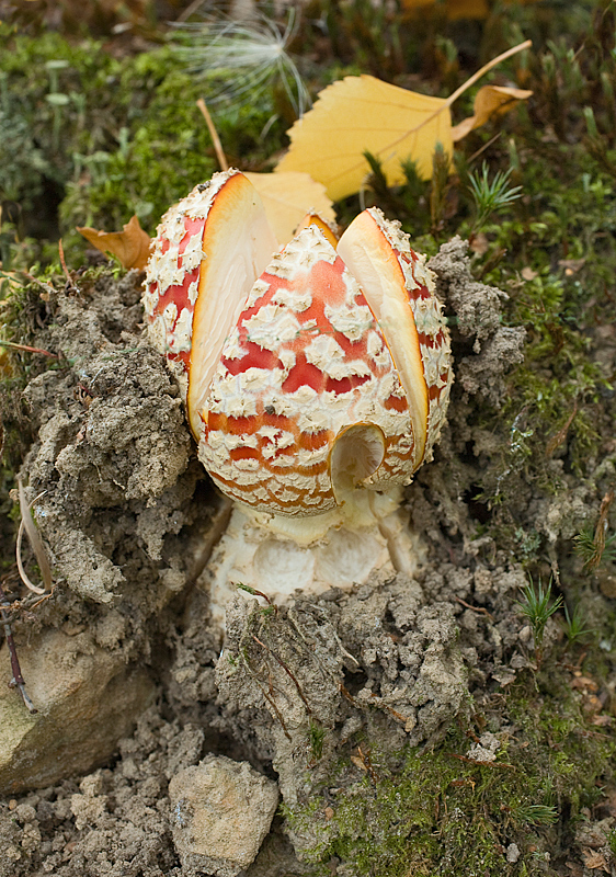 Я тоже такое растрескивание вижу впервые, наверное разорвало напряжение, остаточное от пробивания сквозь почву в сложном месте. Но мухомор обычный, часто встречается...