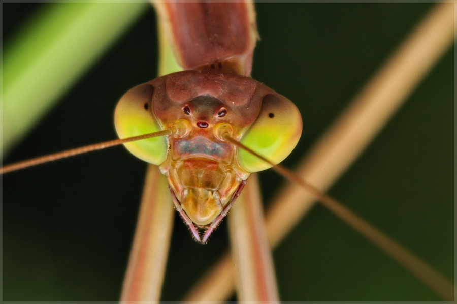 Нравятся мне эти пятнышки на глазах богомолов... Похожи на зрачки, а с ними взгляд кажется таким осмысленным.