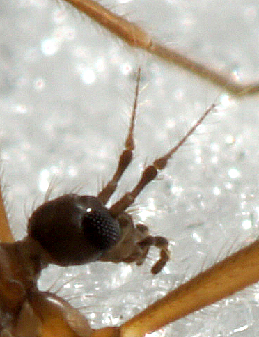Тут видно, что антенны длинные, состоят из 9 члеников: у основания 3 относительно больших и толстых, а на конце - жгутик из 6 тонких члеников, который не короче первых трёх больших члеников. Это говорит о том, что перед нами - другой вид, Chionea (Chionea) araneoides (Dalman, 1816).
