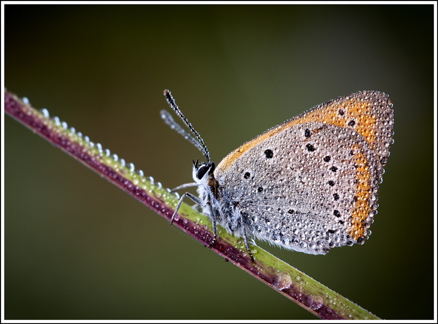 Диафрагма 5,6 для макро великовата. Надо поменьше дырку, тогда капли на веточке тоже попадут в ГРИП.