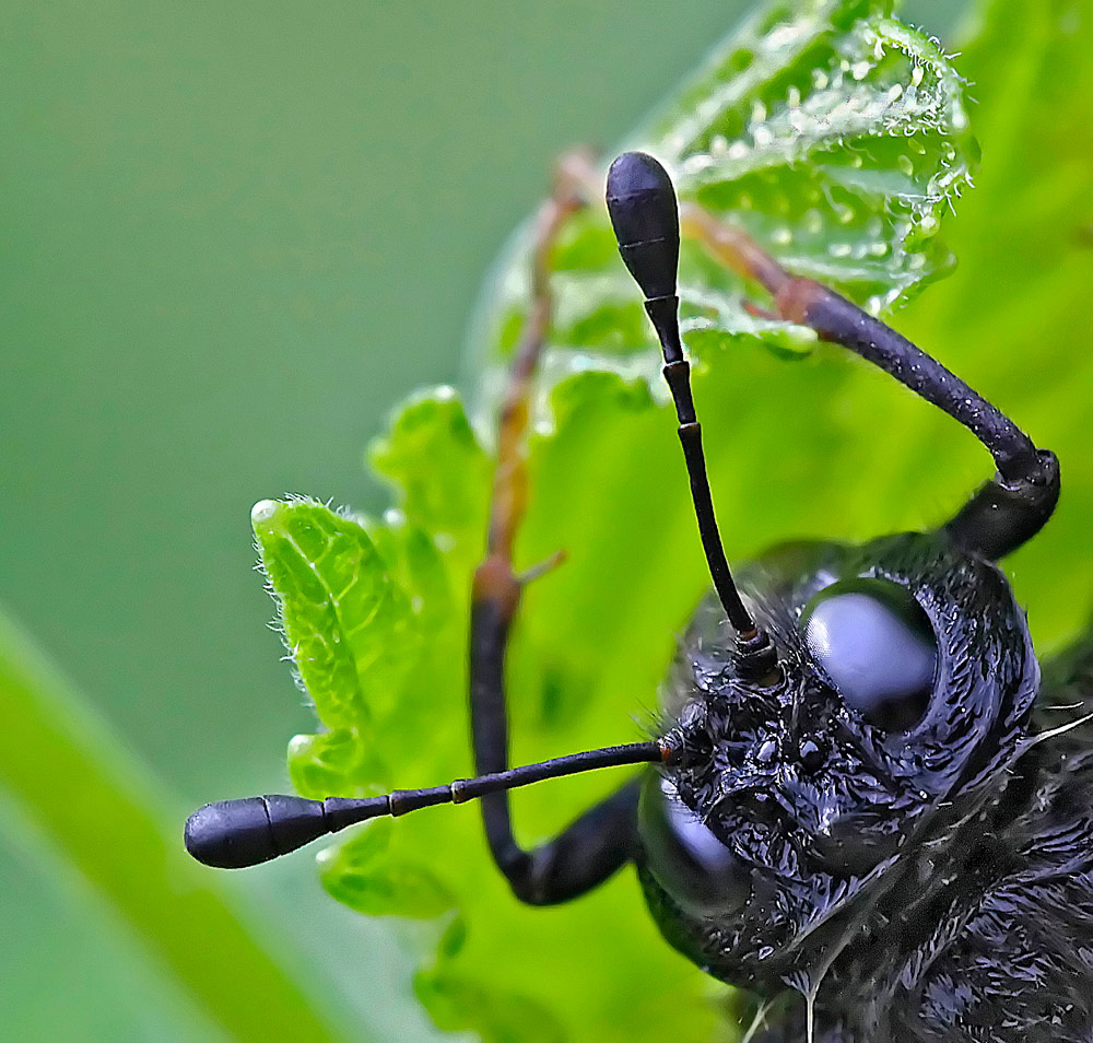 Судя по усам, это может оказаться какой-нибудь булавоусый пилильщик (Cimbicidae). Кадр с общим видом насекомого поищу. Возможно он имеется.