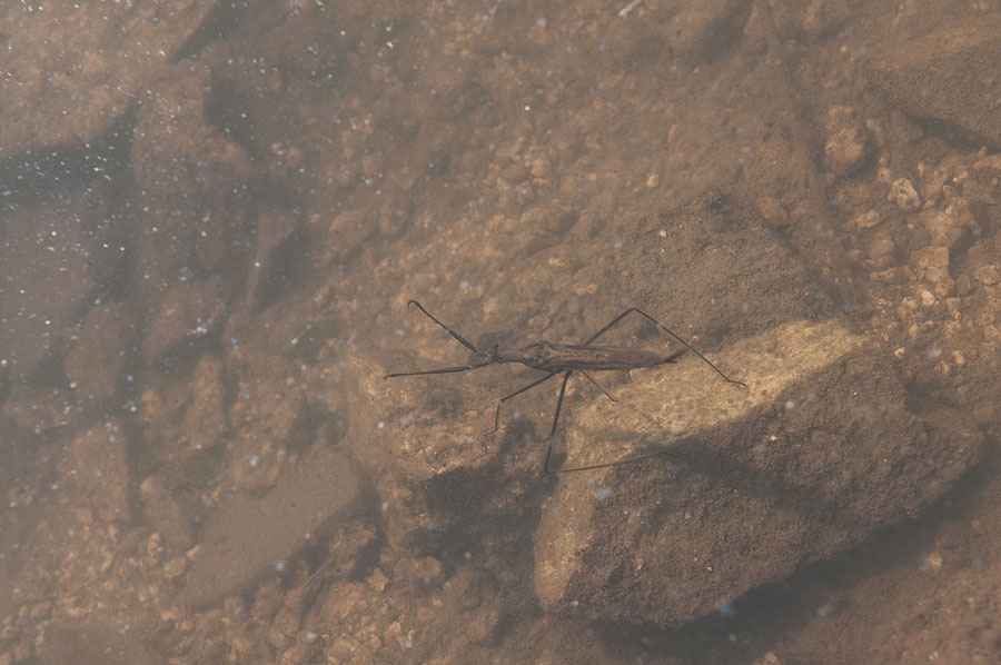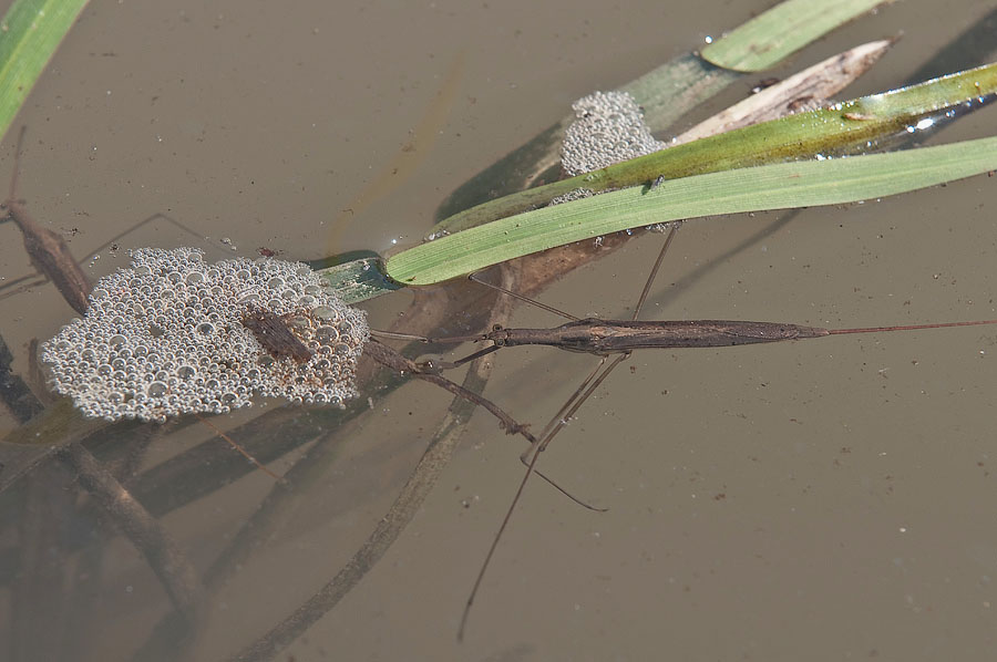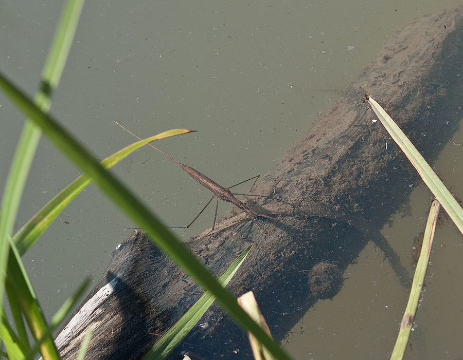 Тело удлиненное, почти палочковидное, длиной 35-40 мм. Дыхательная трубка такой же длины, как и тело. Формой тела и окраской ранатра напоминает грязный сучок, лежащий на дне водоема. Для дыхания использует кислород воздуха, выставляя из воды длинную дыхательную трубку, и таким образом набирая воздух. Передвигается в воде медленно, цепляясь коготками за растения. Пассивный, но очень жестокий хищник, охотится на головастиков, мальков рыб и водных беспозвоночных. Яйца самка откладывает на растения. Они имеют удлиненную форму с двумя нитевидными отростками, равными или немного превышающими длину яйца.