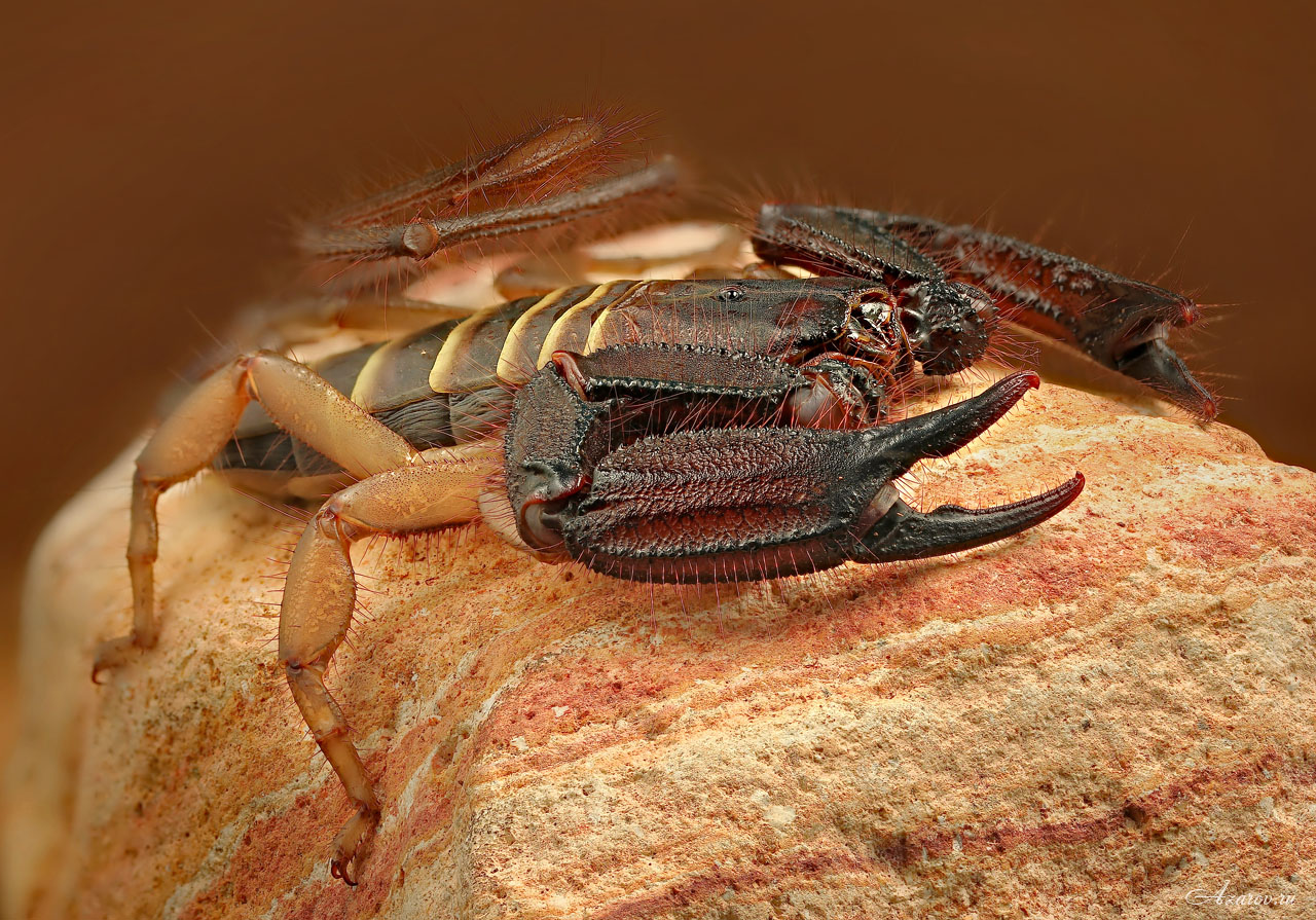 Это ракурс  Клешни конечно есть, какой же скорпион без клешней  Просто попробуй потаскай тяжелые клешни по веткам деревьев, вот он и обзавелся тоненькими  Сила скорпиона в его хвосте, а он у него вон какой "накачанный"