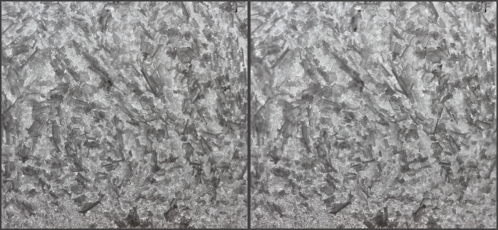 Объект съёмки - это заиндевевшее окно в бане. Кристаллы льда довольно крупные около 1 см. Первый раз увидел такую структуру воды  Понятно, спасибо.