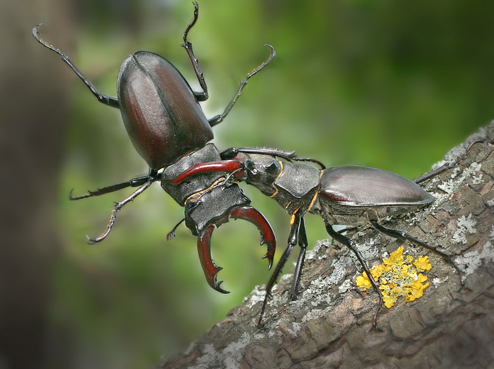 На самом деле бронзовка нашла ранку на дереве и пила сок, а усач крутился вокруг неё стараясь тоже получить порцию дубового сока, потом один жук забрался на другого, в этотм момент я и нажал на кнопку