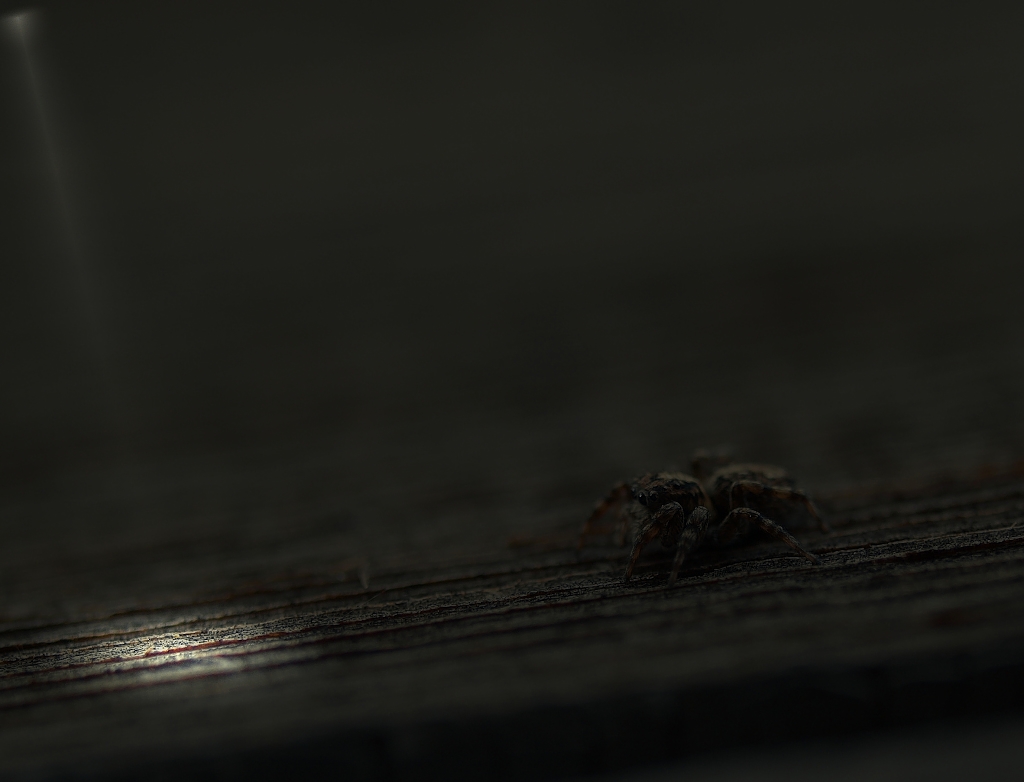 Интересная работа в низком ключе.  Хорошо бы глазки у паучка ещё подсветить, если это возможно.