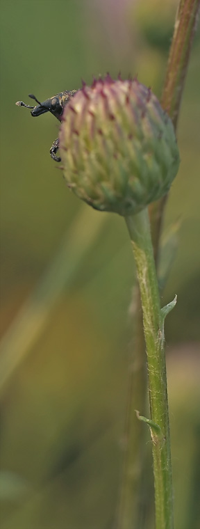 Да, в такую жару даже эти юркие осы немножко заторможенные. Вяло посасывают влагу из бутонов этих колючих растений.