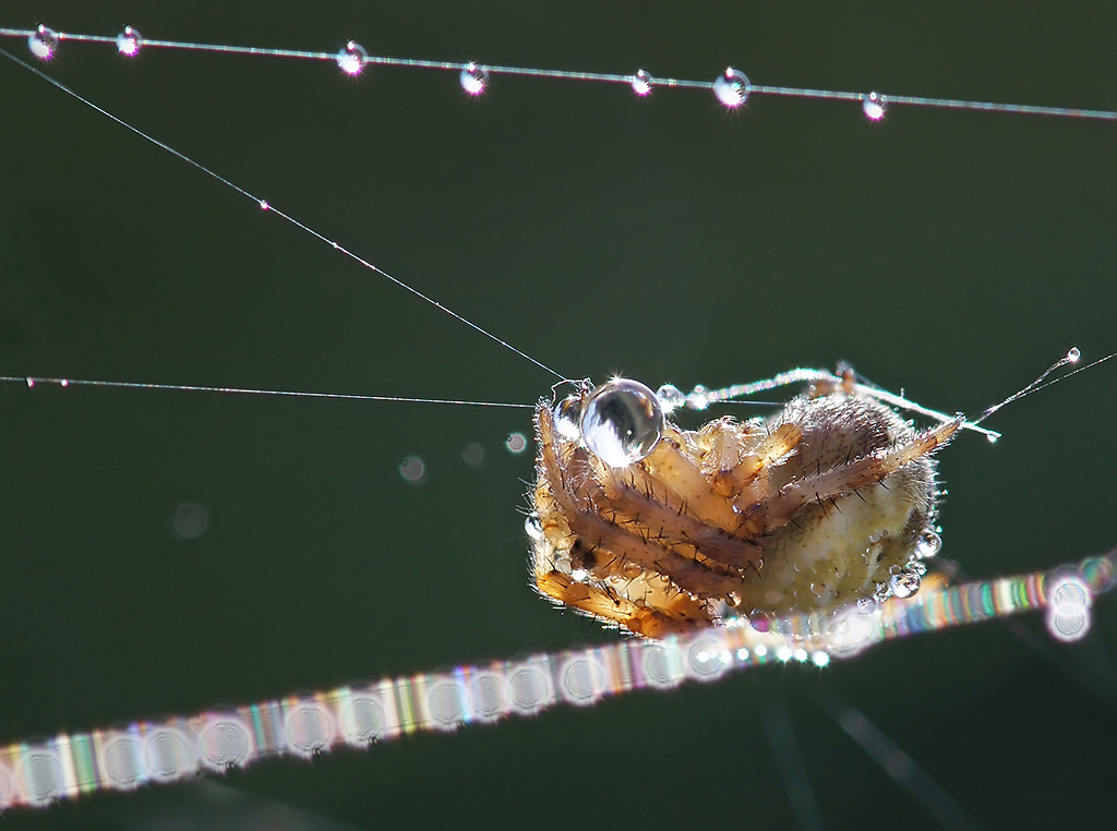 А как он жука разорвал? Думаю, что жук стал добычей другого хищника, а паук пришел позавидовать чужой удаче.