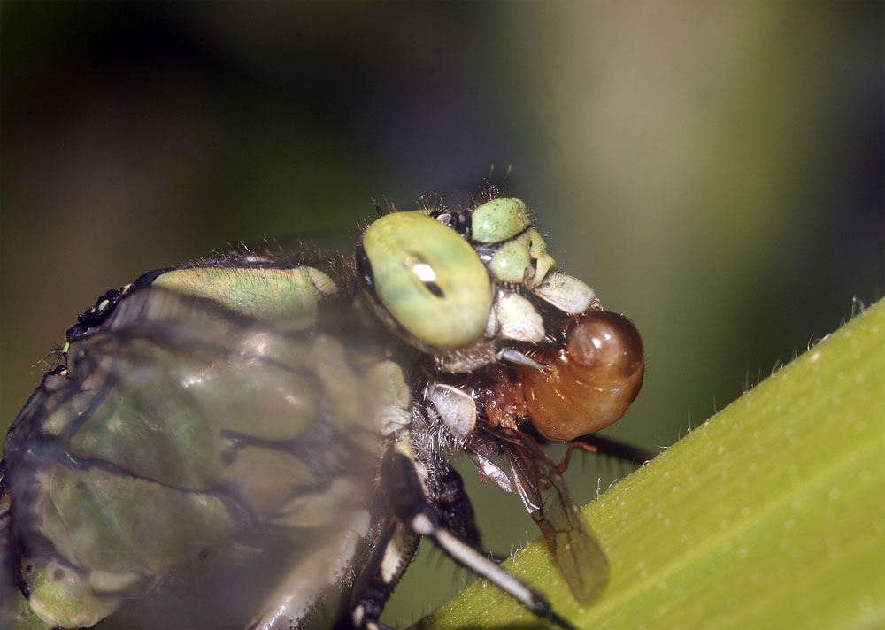 Явно "дедушка" какой-то, Gomphidae то бишь -- для них очень характерен такой засадный метод охоты -- сидит-сидит, потом ШМЯК -- уже кого-то ест. Здесь, похоже, муравьиную самку лопает. Вылет муравьев -- пир для многих животных...