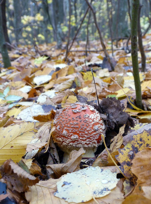 Красиво лес показан, листья еще не потеряли краски.