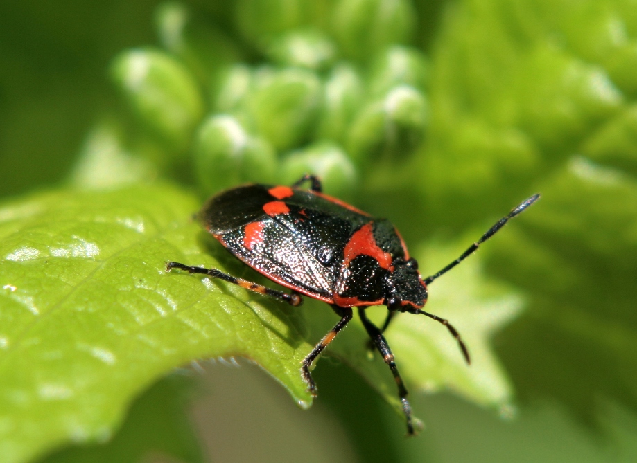 Это клоп рапсовый - Eurydema oleracea (Linnaeus, 1758), красная форма. Он относится к настоящим щитникам -сем. Pentatomidae.