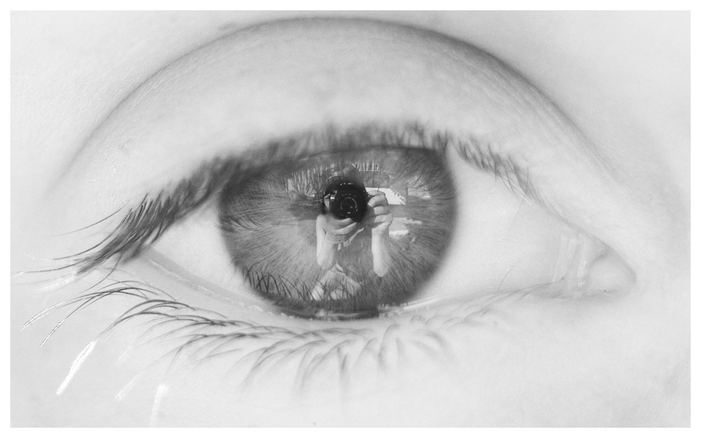 Тема отражения снимающего ( и фотооборудования) в зрачке глаза не нова и можно привести тому множество примеров........  Уже мои ребята в студии более 20 лет тому назад, пытаясь отразить свое увлечение фотографией, хотели, чтобы их глаз был объективом фотоаппарата. Но тогда не было современной техники, и они воспользовались обычным коллажем.......и вот что получилось.  Ваш снимок чем-то тронул меня, но и обеспокоил........например, несоизмеримо большими руками на переднем плане, и абсолютно гладкое веко, живущее само по себе........чего-то не хватало, и глядя на ребячий снимок, понял - нет брови, нет целостного глаза. И все равно, Ваш интерес к многообразию макрофотграфического изображения - это здорово! И Ваши несомненные успехи еще впереди. Доброго Вам пути!
