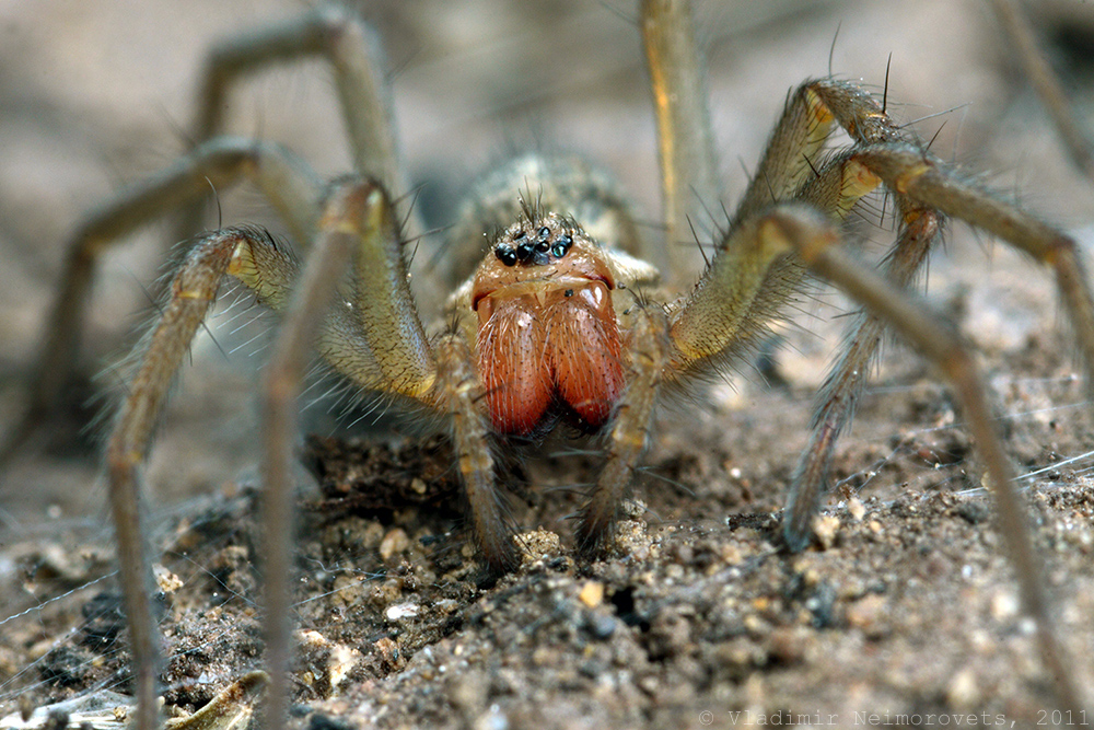 С партнершей у них немного по-другому ЭТО происходит... А так, скрытный паучок, но ночью его можно увидеть - я снимал его рядом с крыльцом во дворе около 12 ночи. Не думаю, что он очень редкий. P.S. В интернете увидел еще несколько фотографий, где пауки этого семейства тащат мокриц. Может быть, это семейство специализируется на такой пище...