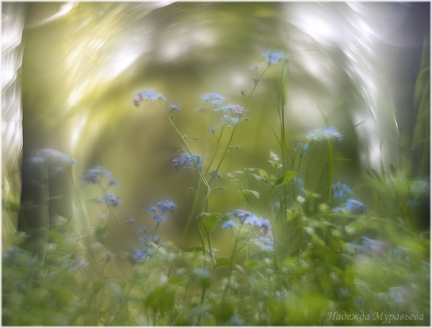 Незабудки самые обычные, попробовала авторежим при конвертации из РАВ, ФШ предложил вариант, я решила, что так интереснее.