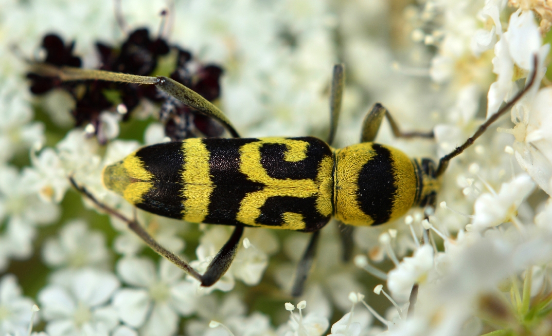 Клит изменчивый - Chlorophorus varius (Müller, 1766), семейство Усачи (Cerambycidae). См. например