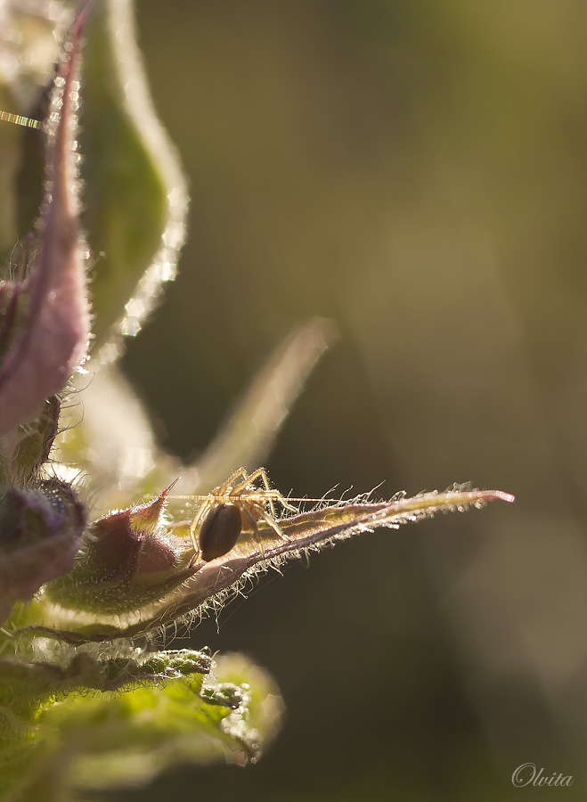 Мне на самом деле немного мешает основная веточка, но как ни старался, во всей серии мало снимков получилось где она имеет приятный изгиб, но в тех снимках паучек не на месте.