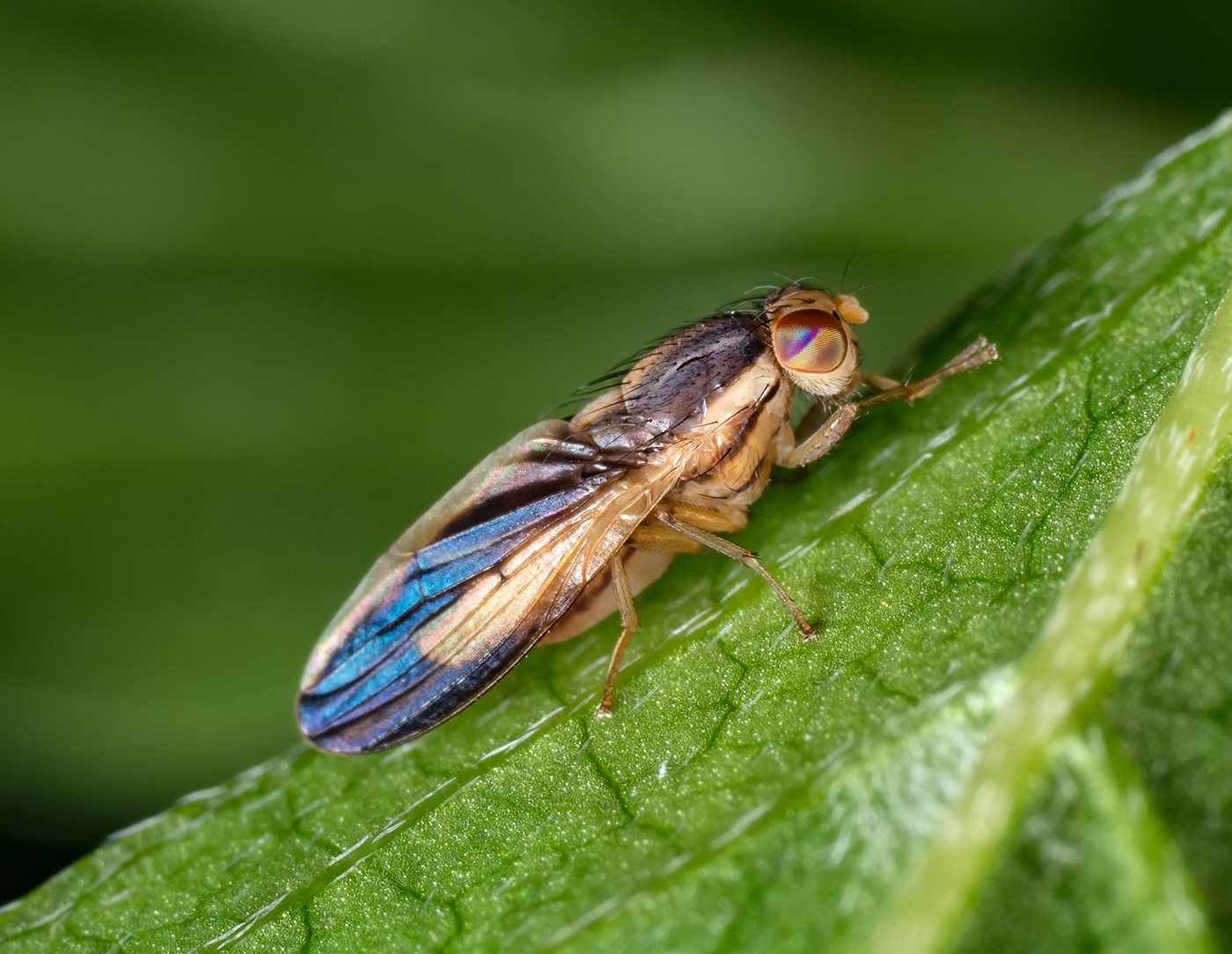 А может быть эту капельку муха сама выделила! У других двукрылых это частенько встречается. Например, здесь: http://macroclub.ru/gallery/showphoto.php?photo=9835 И у меня есть подобные фото, только сходу не нашел.