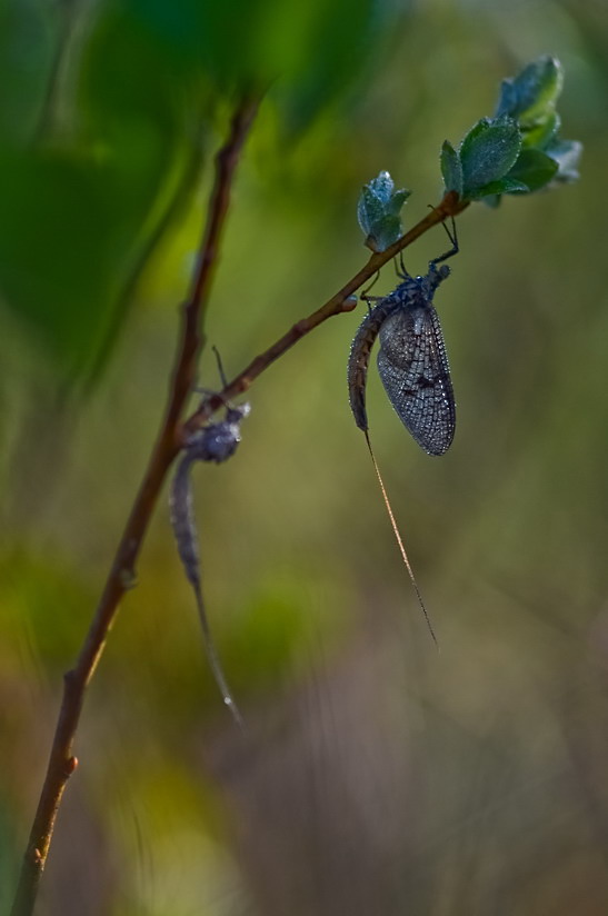 То, что на снимке поденка, как Вы отметили в ключевых ловах, несомненно. Определить с точностью до семейства для меня проблематично, т.к. не видно количества, например, хвостовых нитей.