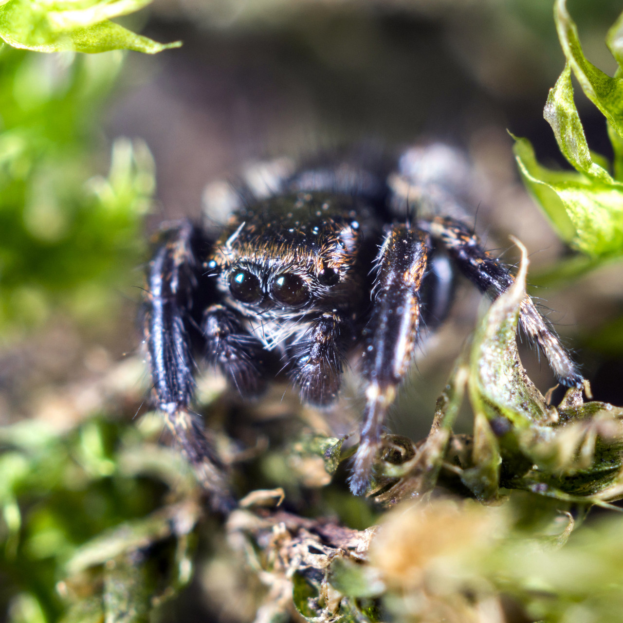 Интересно, по фотографиям скакунчиков можно определить, какое освещение используется макрофотографом. В моем случае две внешние вспышки с боков, и это хорошо видно.