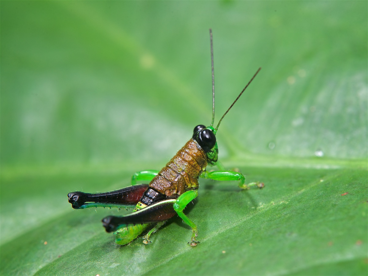 Среди массы больших, зеленых кузнечиков, часто прилетавших на экран, этот сильно отличался практически всем, в том числе и нежеланием прилетать на светоловушку
