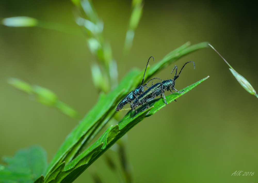Возможно из рода Agapanthia. Кандидатура - агапантия фиолетовая - Agapanthia violacea (Fabricius, 1775)