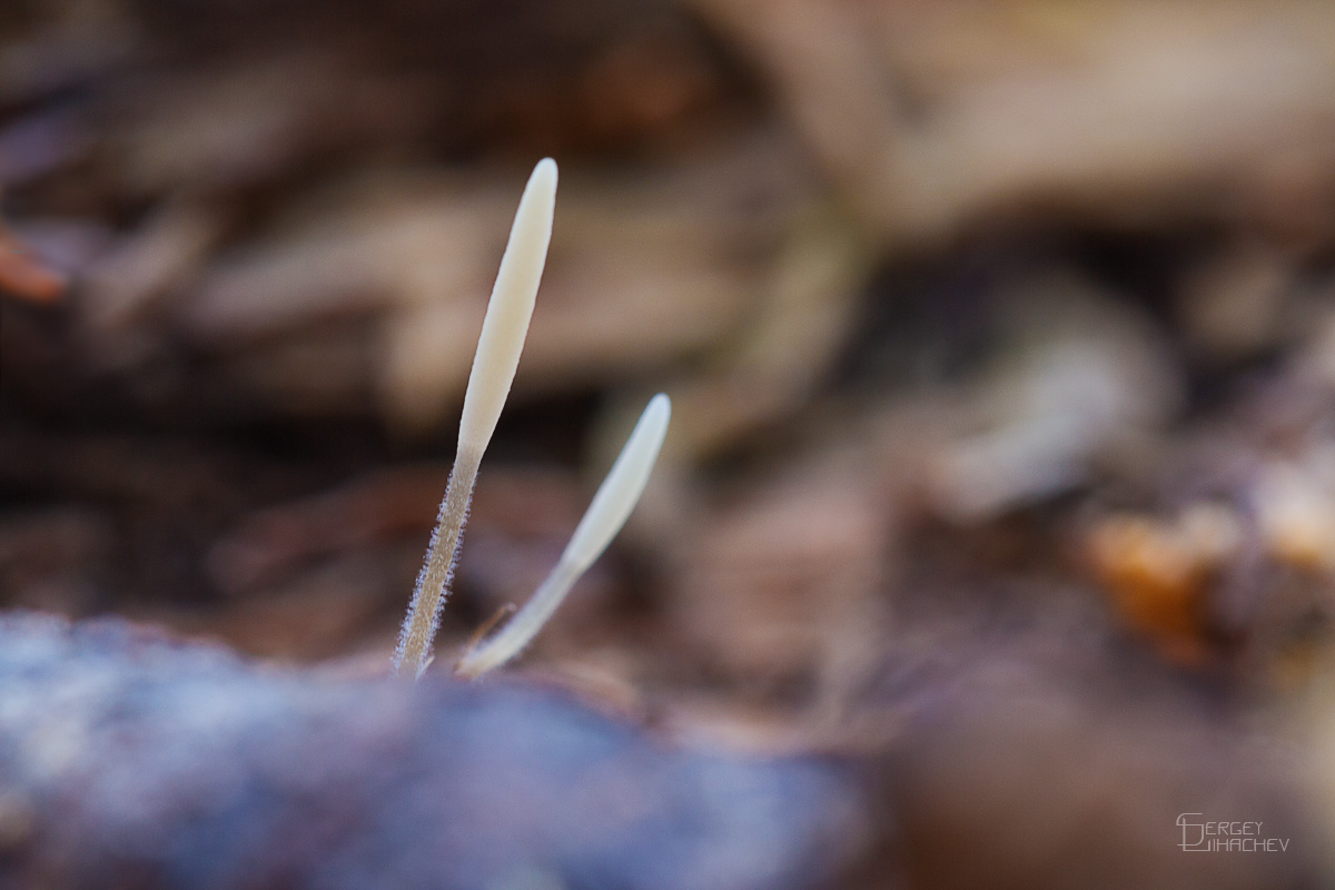 Возможно тифула дюймовая - Typhula uncialis. P.S. Приоритет в определении за Woodmen-ом.