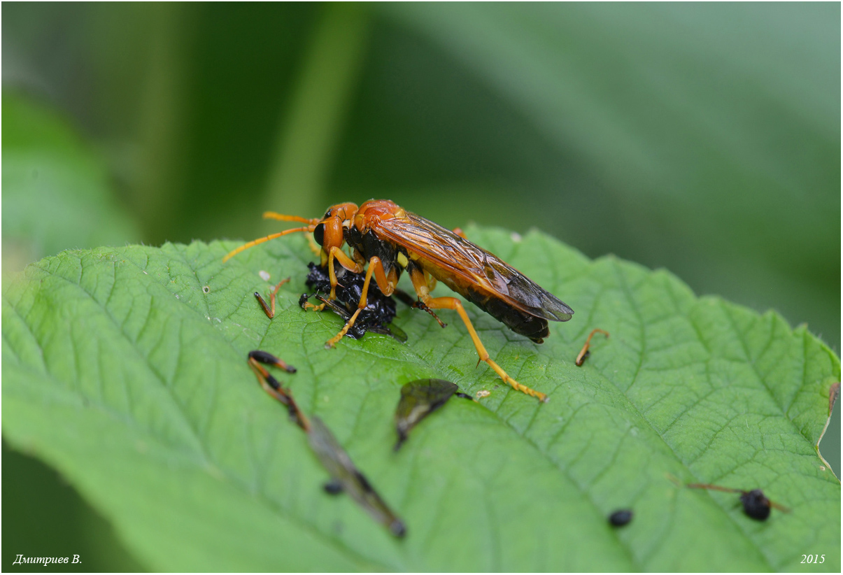 Как у них у этих перепончатокрылых всё интересно устроено. У ос - личинки мясоеды, а взрослые на цветочках пасутся, пыльцой да нектарчиком перебиваются. А у пилильщиков наоборот, личинки ботвой питаются, а взрослые - злостные хищники...