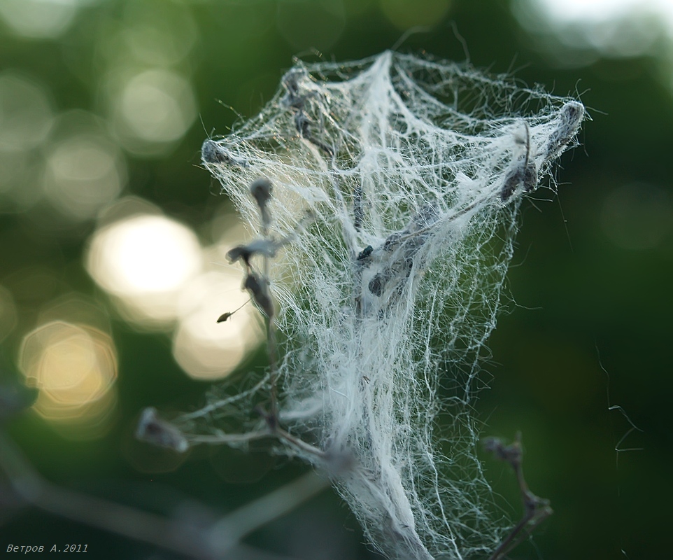 Причем, сплетен из шелковых нитей... Вон, как искрятся!