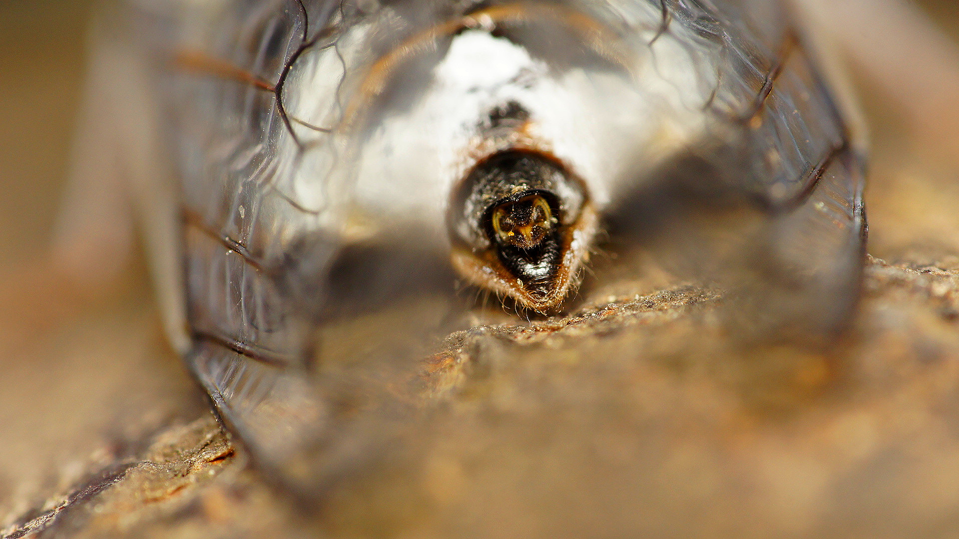 Снимок на мой взгляд выглядит с таким фоном плоским, даже при выпадении их ГРИП значительной части гусеницы. Свет в лоб объема снимку также не добавляет.