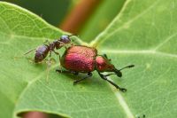 этот жучок намного меньше шпанской мушки, он всего около 7-8 мм в длинну и около 2 мм в ширину