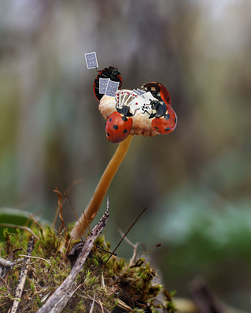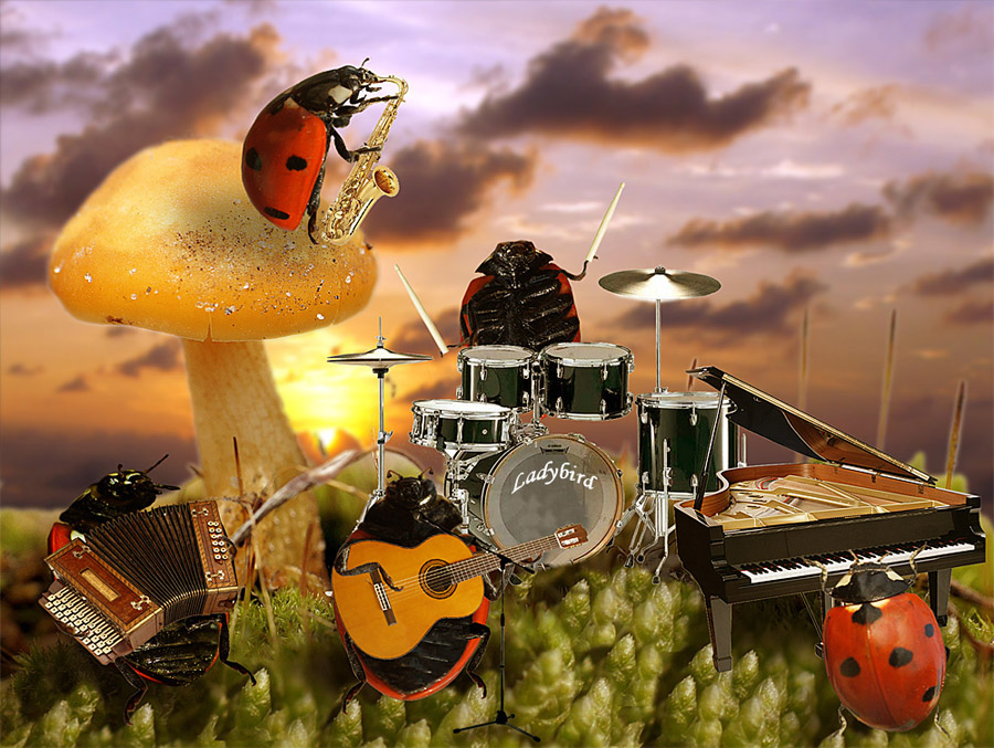 Вот и ломай голову: это гриб такой маленький или мух такой здоровый ...