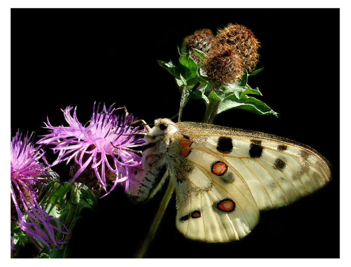 Отчасти соглпасен с Вами, Алёна. Но это "заслуга" не вспышки, а солнца.Оно было довольно ярким. Обычно снимаю утром или вечером, а тут - полдень- самое пекло, но выбора не было.Сделал серию снимков, но ,по-моему, другие такие же. Поэтому ограничился одним снимком.Хотя позы у бабочки были довольно разнообразны.