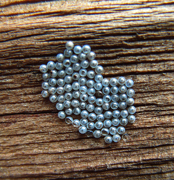 Новая информация о клопинных кладках,Вадим  Именно здесь, в галерее, ...желтых и веселых ("улыбающихся") я не встречал (может быть прозевал.....можешь и ты пробежаться по Макроиду). А голубых дарю именно тебе (для информации  ),хотя есть некоторые сомнения,что это клопинные. Круглые яйца (но не цветастые) более свойственны бабочкам  . А из твоих вылезли бы крошки-клопики.... можно увидеть в том же Макроиде.