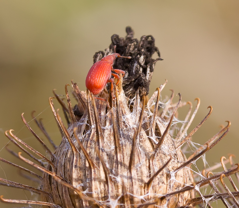 На мой взгляд, ракурс съемки выбран не очень удачно. Глядя на эту картинку, возникает чувство беспокойства. Как-будто ветка придавила жука, хотя умом понимаешь, что это не так.
